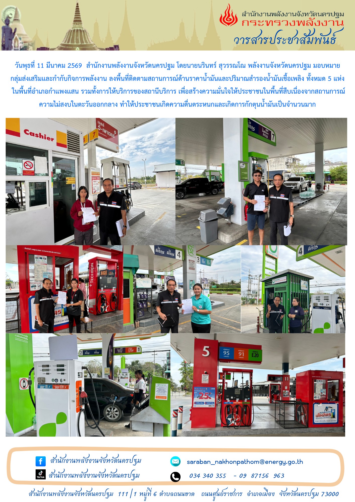 วันพุธที่ 11 มีนาคม 2569 สำนักงานพลังงานจังหวัดนครปฐม โดยนายนรินทร์ สุวรรณโณ พลังงานจังหวัดนครปฐม มอบหมาย